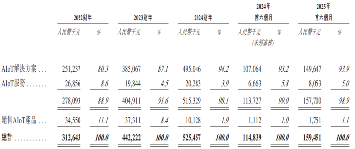 业务方面,德风科技的业务结构较为单一。招股书露出,2022年至2025年上半年,公司AIoT处分决策的营收占比从80.3%升至93.9%,成为十足的收入相沿,而AIoT做事、AIoT家具销售的占比抓续下滑,放弃2025年上半年,仅为5%和1.1%。